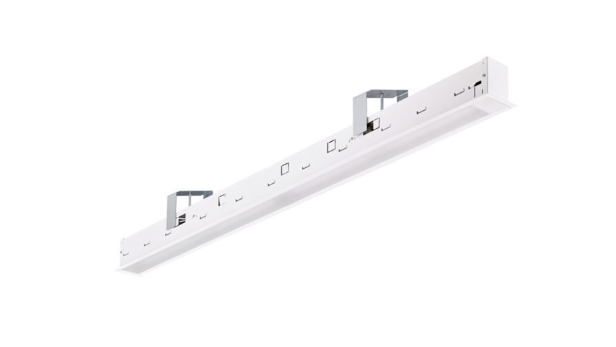 1410x80 mm, Plaster ceiling version, Steel, White, Signal white (RAL9003), Dali dimming Interact System ready external for central emergency lighting, 1900 lm, 14 W, 143 lm/W, 4000 K, (0.38, 0.38) SDCM <3, CRI>90, UGR16, Wide beam, Structured optic, Polymethyl methacrylate, IP20 | Finger-protected, IK03 | 0.35 J reinforced, Safety class I, Push-in connector 5-pole, DC operated central emergency lighting