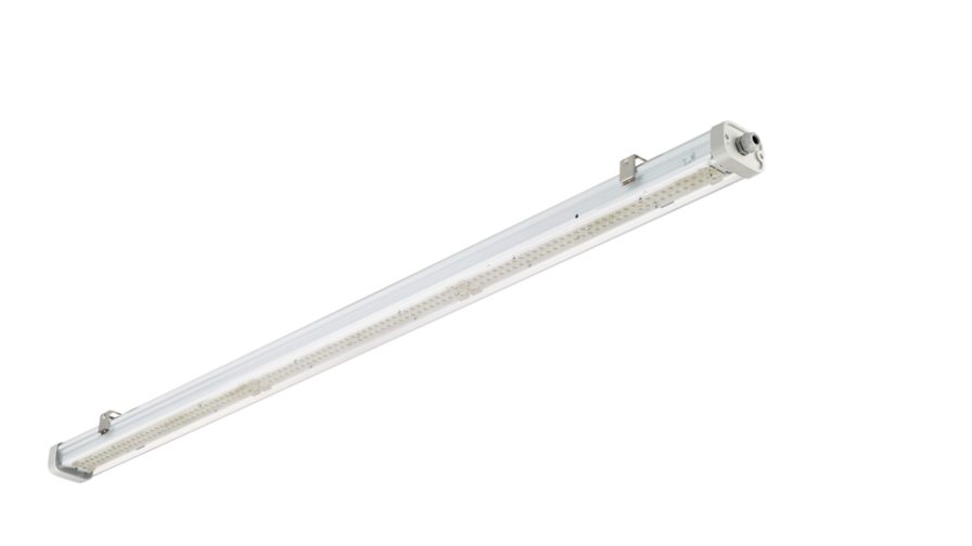 Waterproof, L1800 mm, Polycarbonate, White, Power supply unit (On/Off), 6200 lm, 44 W, 141 lm/W, 4000 K, (0.38, 0.38) SDCM <3, UGR19, Narrow beam - High-rack optic, Clear, Polycarbonate, IP66 | Dust penetration-protected, jet-proof, IK08 | 5 J vandal-protected, Safety class I, Push-in connector 5-pole
