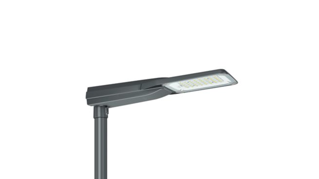 Road & street light, Aluminum die cast, Dark gray, Spigot for diameter 62 mm, Power supply unit with DALI interface, 4550 lm, 34 W, 134 lm/W, 3000 K, (0.43. 0.40) SDCM <5, CRI80, Distribution medium 11, IP66 | Dust penetration-protected, jet-proof, IK09 | 10 J, Safety class II, Surge protection level until 6 kV differential mode and 8 kV common mode, Screw connector
